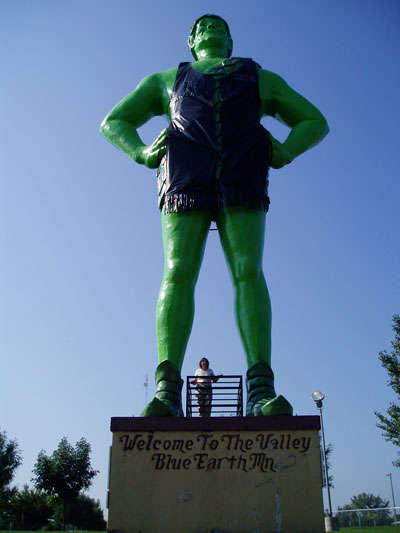On the return trip, we followed the Lewis and Clark Bicentennial Trail and found the Green Giant in Blue Earth, Minnesota